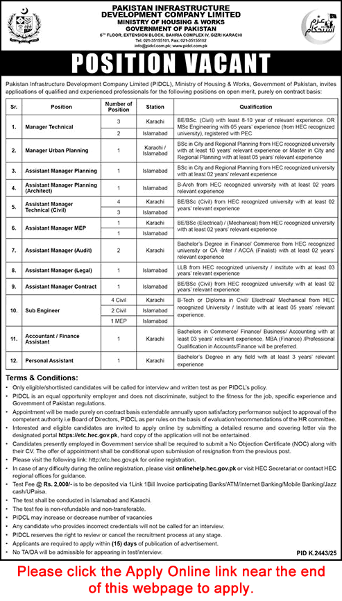PIDCL Jobs 2026 – Ministry of Housing & Works (Apply via HEC ETC Portal)