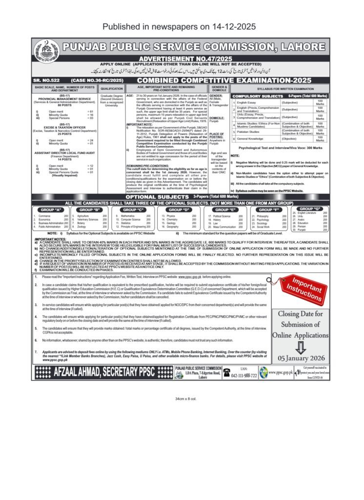 | Assistant Director Local Fund Audit | BS-17 | Finance Department | 14 |