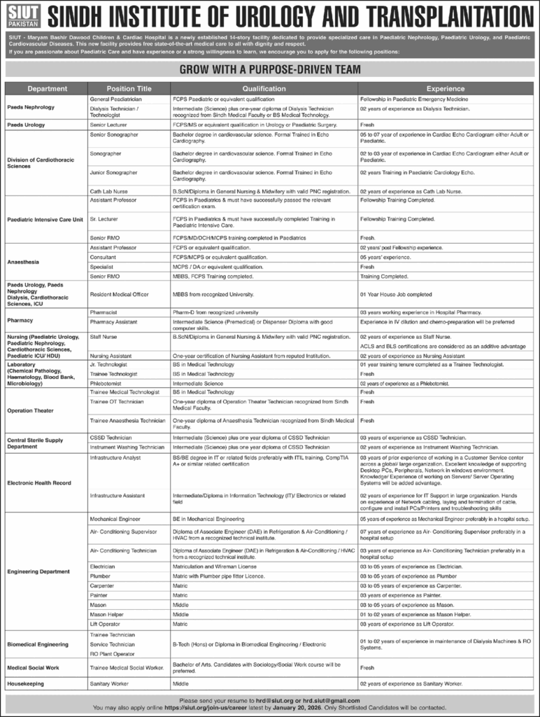 https://siut.org/join-us/career. - Deadline: Ensure your application reaches the department by January 20, 2026.